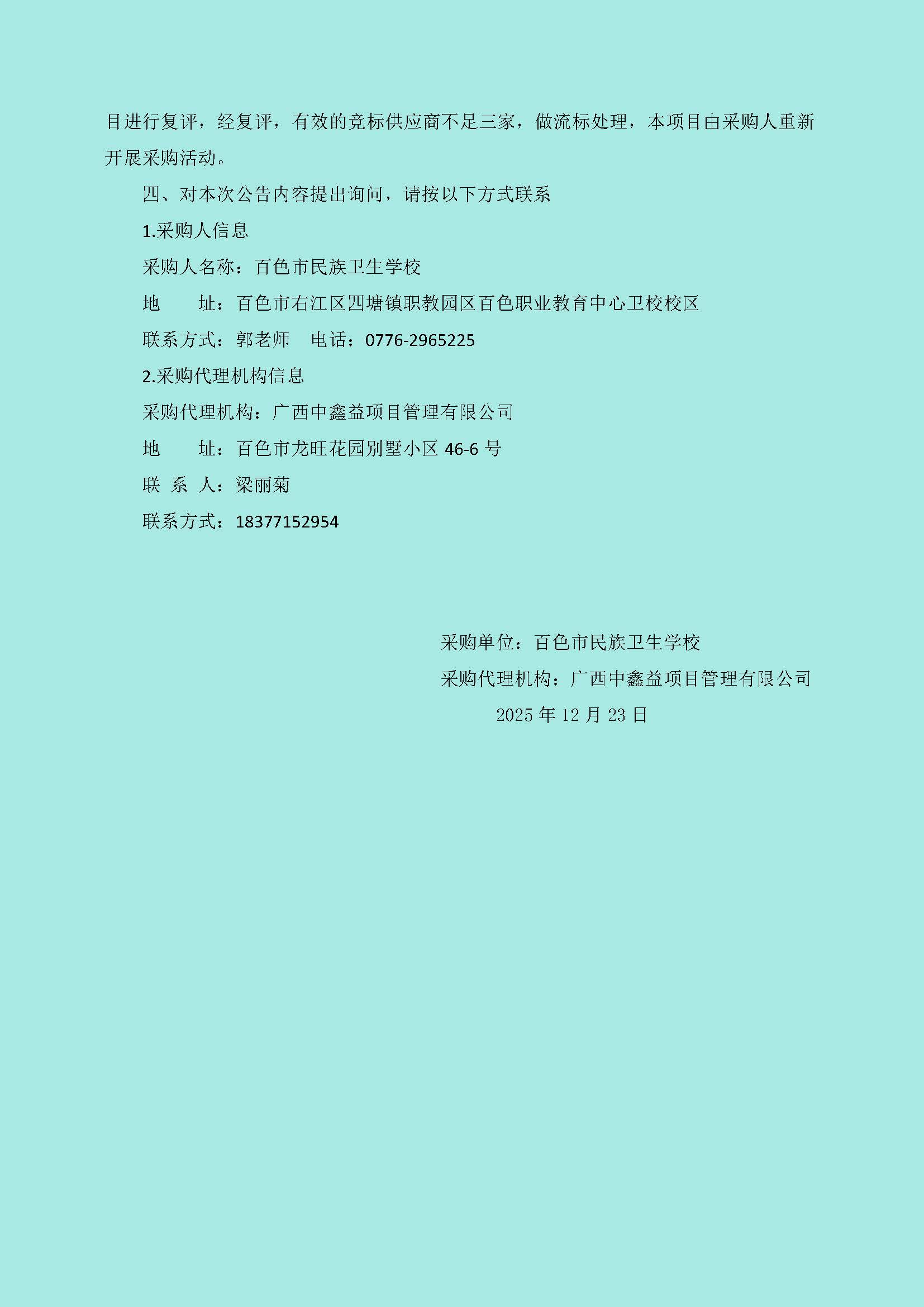 广西中鑫益项目管理有限公司关于百色市民族卫生学校职普融通研学基地(生命科学馆)设备采购项目(ZXYZ-2025-036)的成交结果更正公告