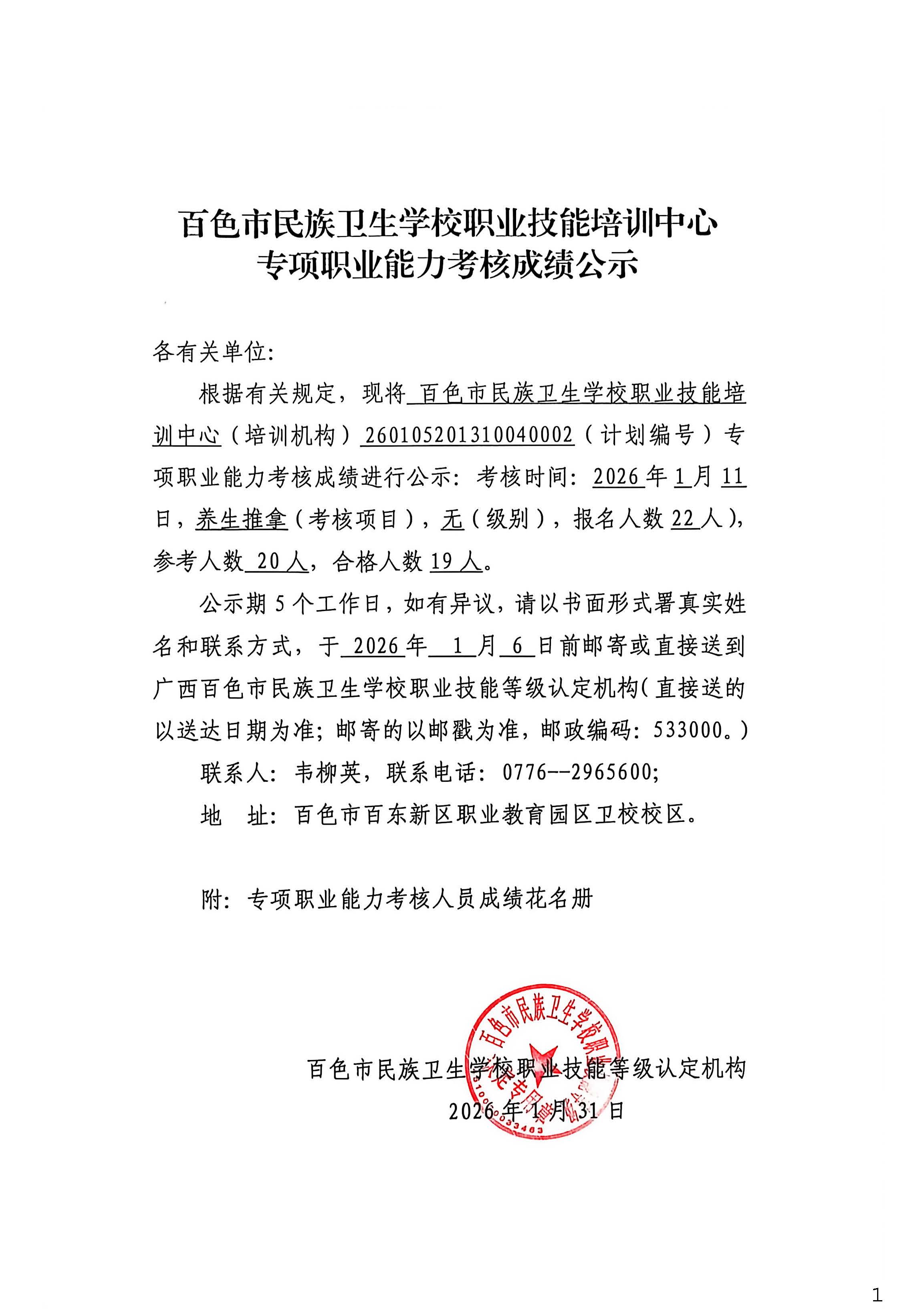 下一篇:百色市彤鑫月嫂家政服务中心职业技能等级认定成绩公示(2026.1.29)
