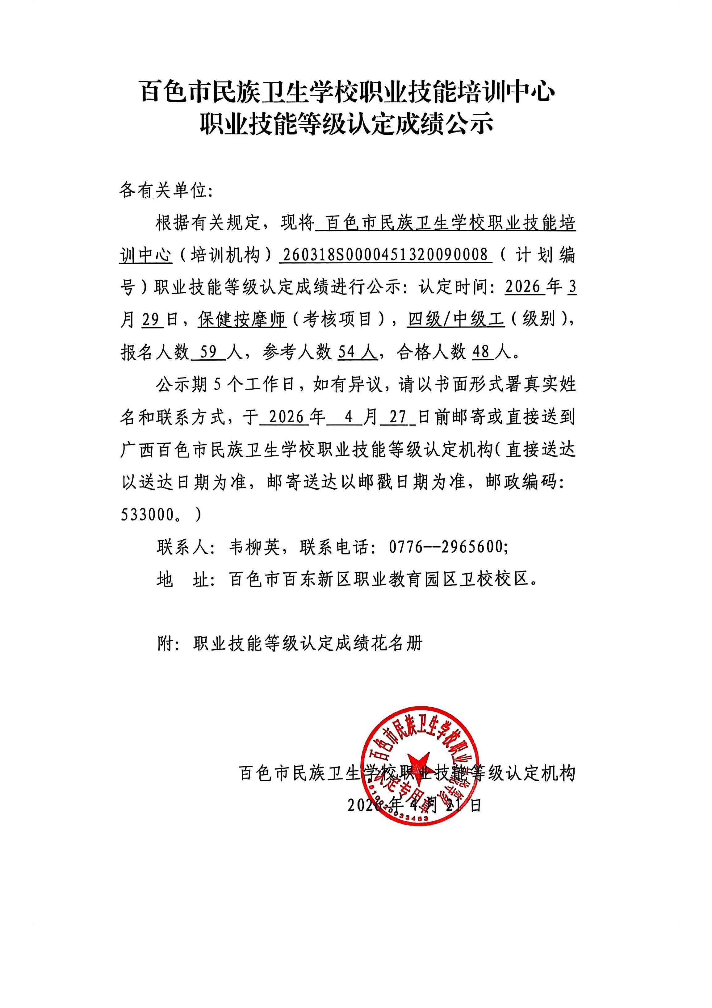 下一篇:右江民族医学院附属医院职业技能等级认定成绩公示(2026.4.2)